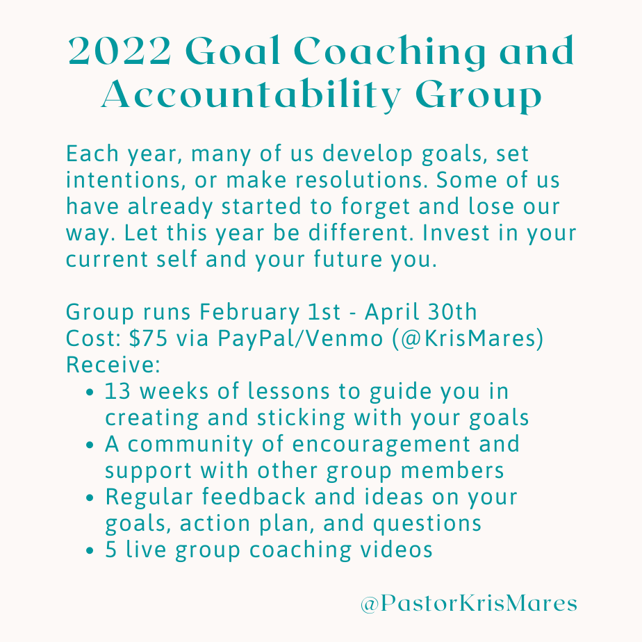 As a part of the 2022 Goal Coaching and Accountability group, those who journey with me will receive: