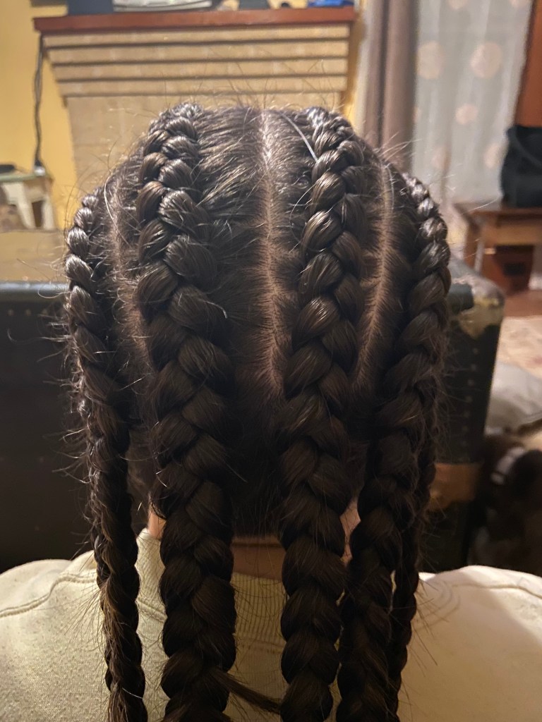 And so I sit down and part the hair and hope my hands hold out. And I remember once hearing a kid answer when asked “How do you show respect to your parent?” with the words “I ask her to braid my hair.” And so that night, more nights than I probably want to remember, love looks like braids.